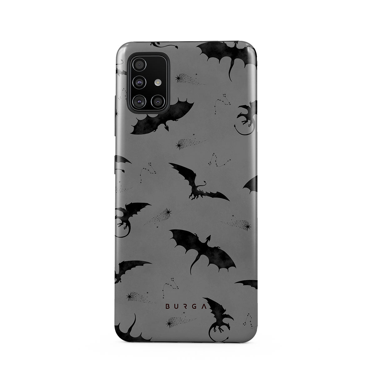 Under the dusk's veil, Draco takes flight, its bats whispering secrets to those who dare. Bold yet elusive, this Samsung Galaxy A71 4G phone case design invites you to embrace the unknown and let the wings of mystery guide your night—where will they take you?