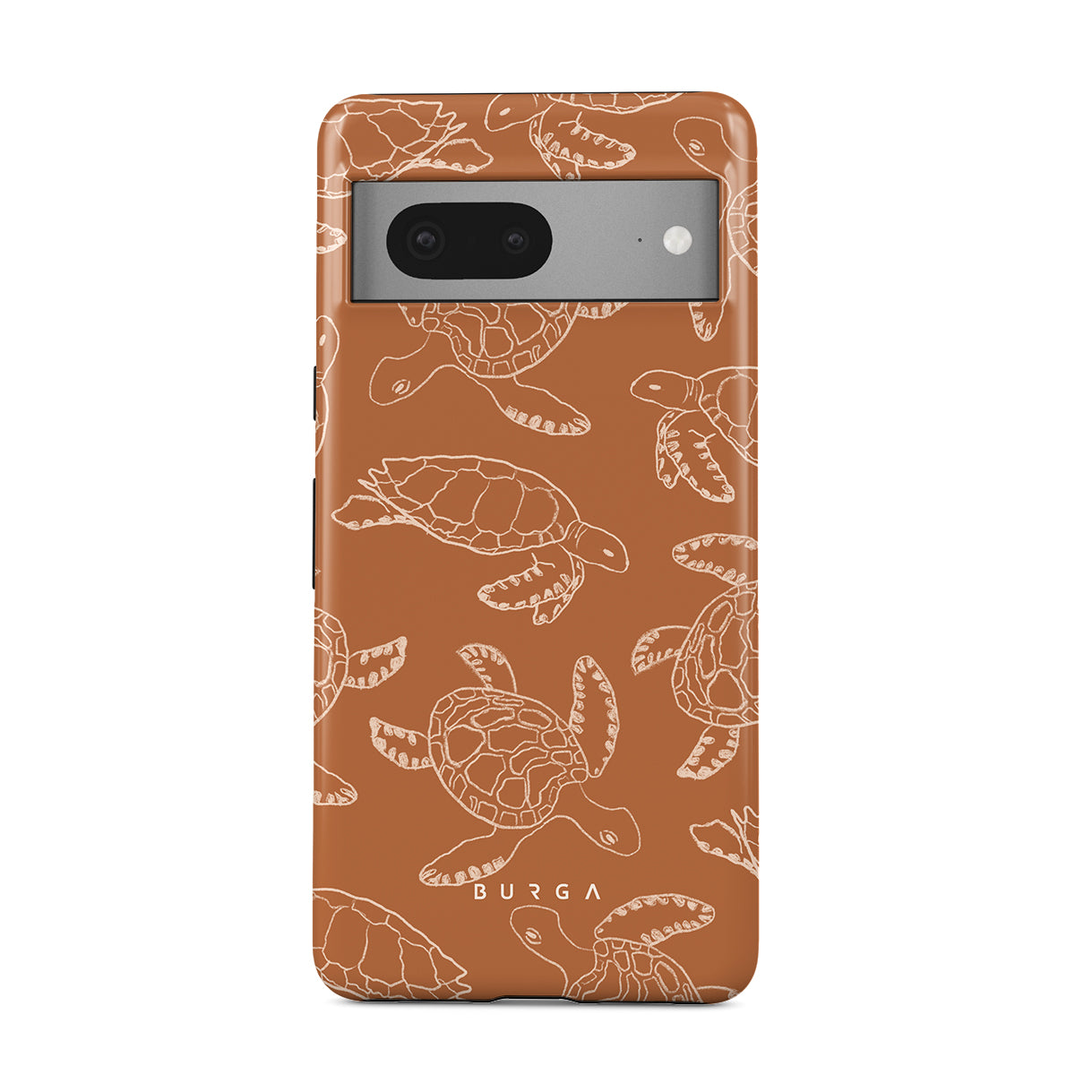 Step into a world of pure bliss and turtle magic with our Earth Shell design. The rich earth tones creating a calming ambiance blend beautifully with the playful turtles floating into adventure. Embark on a thrilling escapade to reconnect with nature with our Earth Shell Google Pixel 7a case.