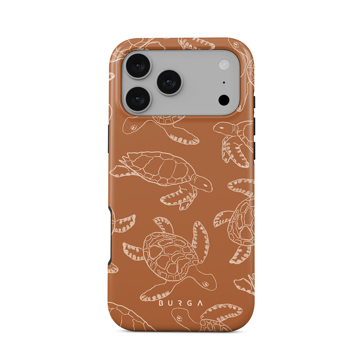 Step into a world of pure bliss and turtle magic with our Earth Shell design. The rich earth tones creating a calming ambiance blend beautifully with the playful turtles floating into adventure. Embark on a thrilling escapade to reconnect with nature with our Earth Shell iPhone 17 Pro Max case.