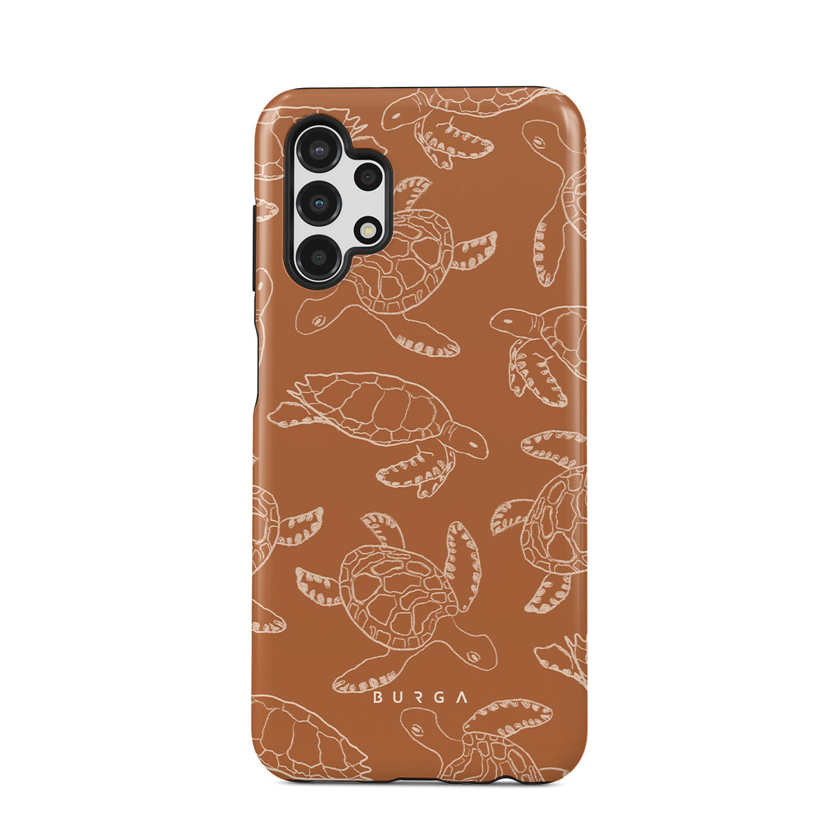Step into a world of pure bliss and turtle magic with our Earth Shell design. The rich earth tones creating a calming ambiance blend beautifully with the playful turtles floating into adventure. Embark on a thrilling escapade to reconnect with nature with our Earth Shell Samsung Galaxy A13 4G case.