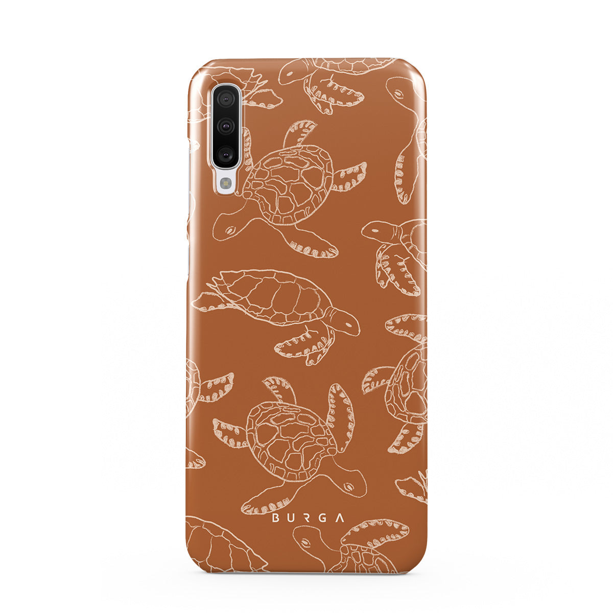 Step into a world of pure bliss and turtle magic with our Earth Shell design. The rich earth tones creating a calming ambiance blend beautifully with the playful turtles floating into adventure. Embark on a thrilling escapade to reconnect with nature with our Earth Shell Samsung Galaxy A70 case.