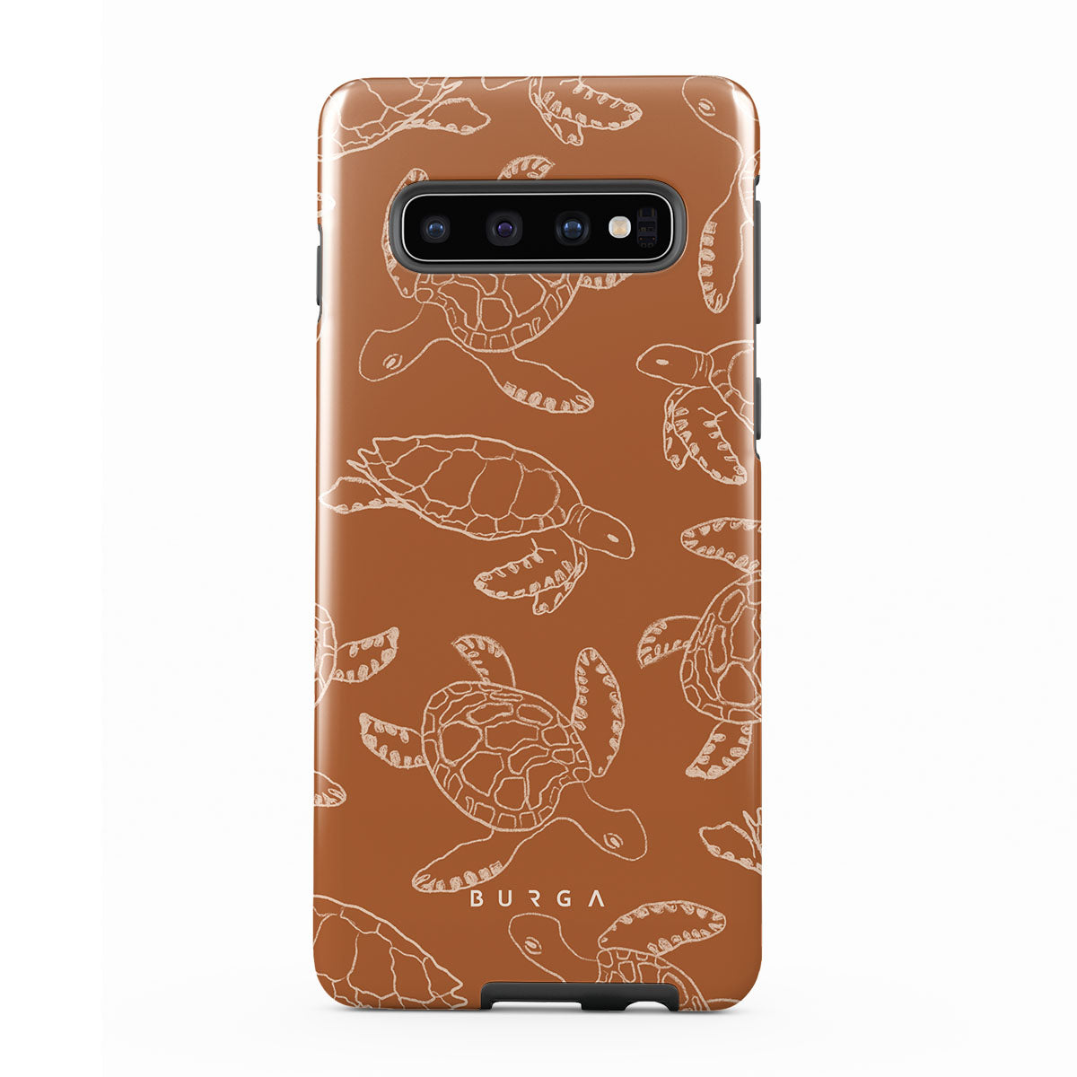 Step into a world of pure bliss and turtle magic with our Earth Shell design. The rich earth tones creating a calming ambiance blend beautifully with the playful turtles floating into adventure. Embark on a thrilling escapade to reconnect with nature with our Earth Shell Samsung Galaxy S10 4G case.