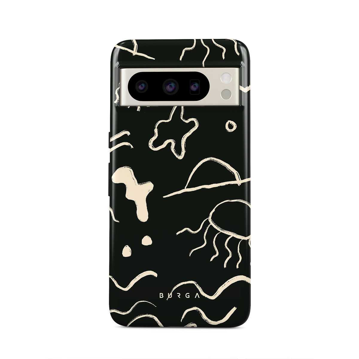 Our Eclipse Google Pixel 8 Pro design reflects the enigmatic beauty of the ocean during a solar eclipse. The dark hues and bright accents represent how the light dances on the water, while the waves and jellyfish capture the serene yet dynamic nature of the ocean.