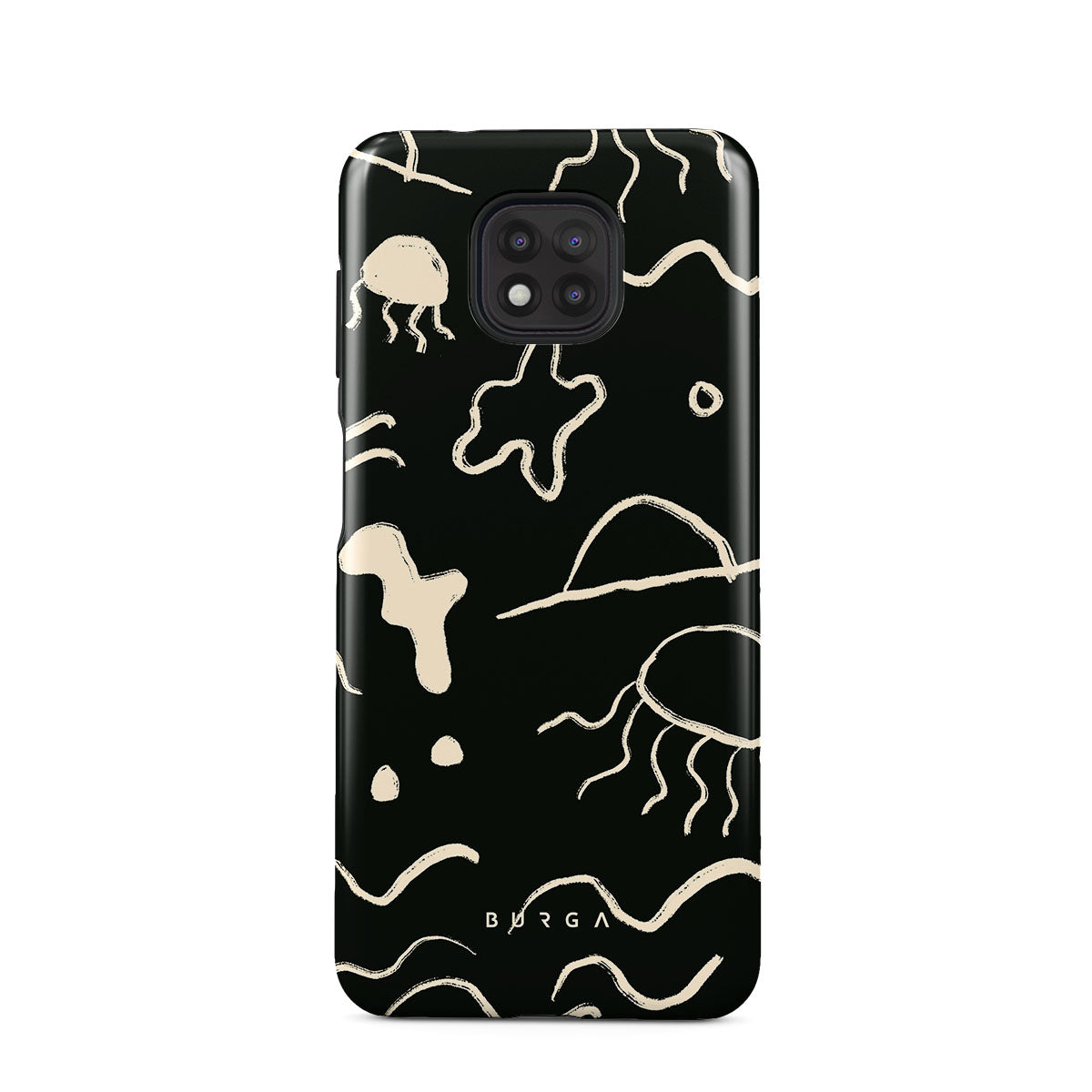 Our Eclipse Motorola Moto G Power 2021 design reflects the enigmatic beauty of the ocean during a solar eclipse. The dark hues and bright accents represent how the light dances on the water, while the waves and jellyfish capture the serene yet dynamic nature of the ocean.