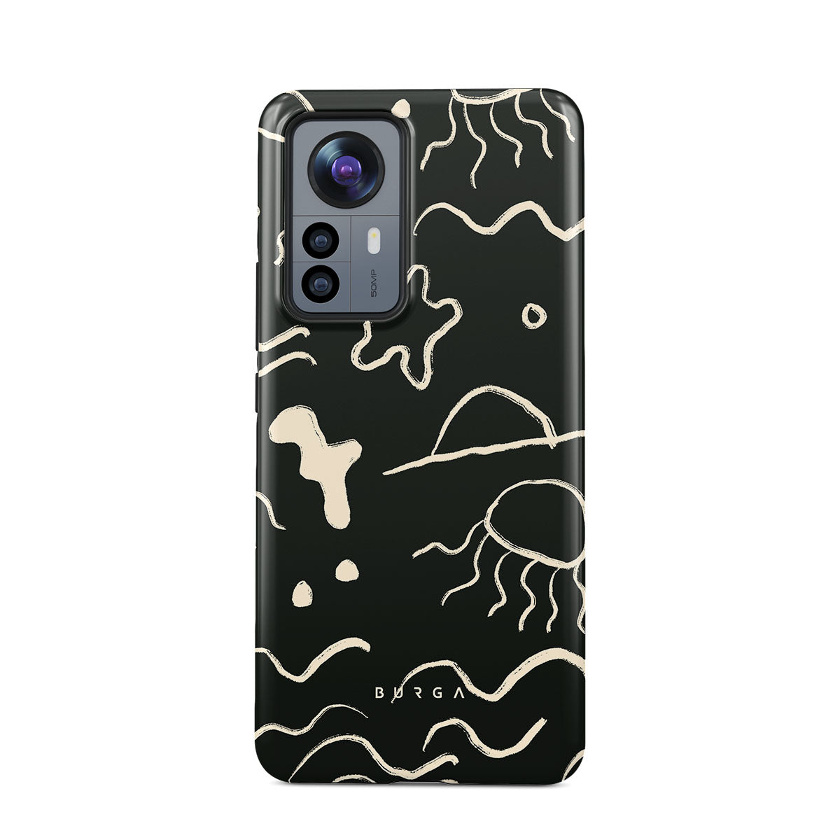 Our Eclipse Xiaomi 12 design reflects the enigmatic beauty of the ocean during a solar eclipse. The dark hues and bright accents represent how the light dances on the water, while the waves and jellyfish capture the serene yet dynamic nature of the ocean.