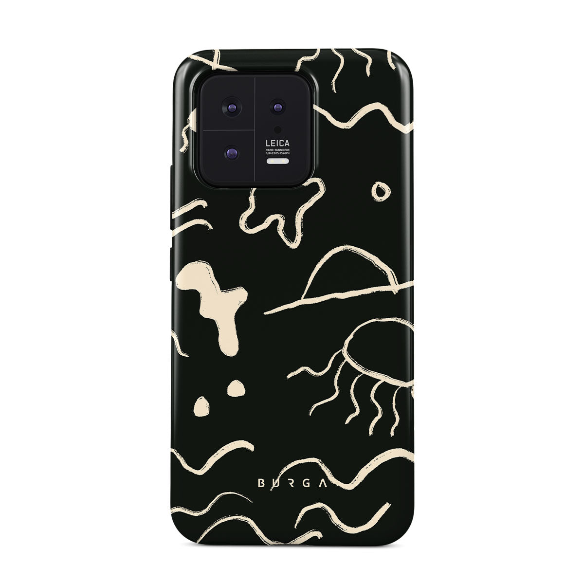 Our Eclipse Xiaomi 13 design reflects the enigmatic beauty of the ocean during a solar eclipse. The dark hues and bright accents represent how the light dances on the water, while the waves and jellyfish capture the serene yet dynamic nature of the ocean.