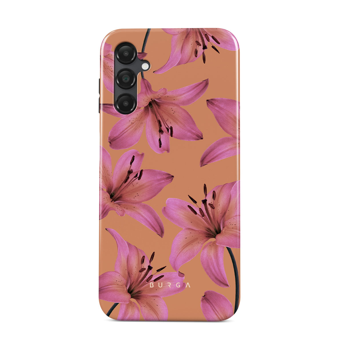 A design inspired by the effortless bloom of lilies, reflecting the beauty of embracing life's spontaneous moments. Like lilies that thrive untamed, this case reminds us to flourish in the face of change. Embodying the magic of life's unpredictable tapestry with our Eden Samsung Galaxy A25 phone case.