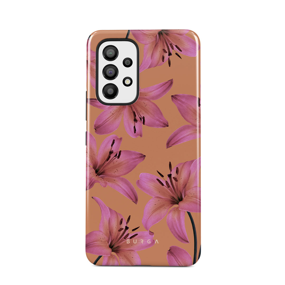 A design inspired by the effortless bloom of lilies, reflecting the beauty of embracing life's spontaneous moments. Like lilies that thrive untamed, this case reminds us to flourish in the face of change. Embodying the magic of life's unpredictable tapestry with our Eden Samsung Galaxy A53 phone case.