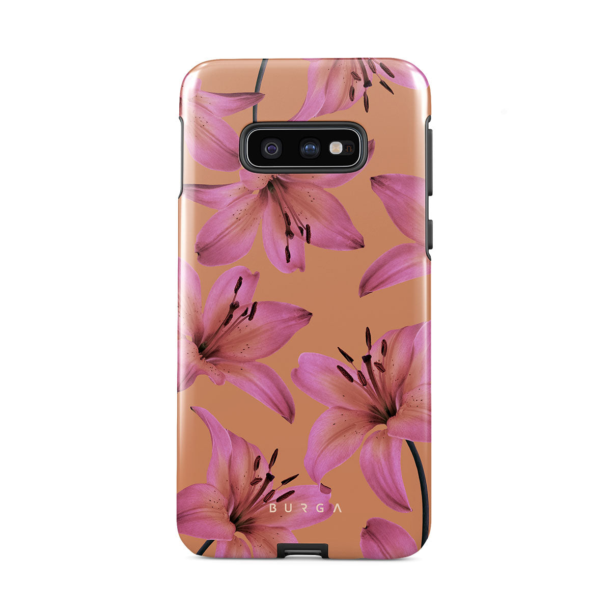 A design inspired by the effortless bloom of lilies, reflecting the beauty of embracing life's spontaneous moments. Like lilies that thrive untamed, this case reminds us to flourish in the face of change. Embodying the magic of life's unpredictable tapestry with our Eden Samsung Galaxy S10E phone case.
