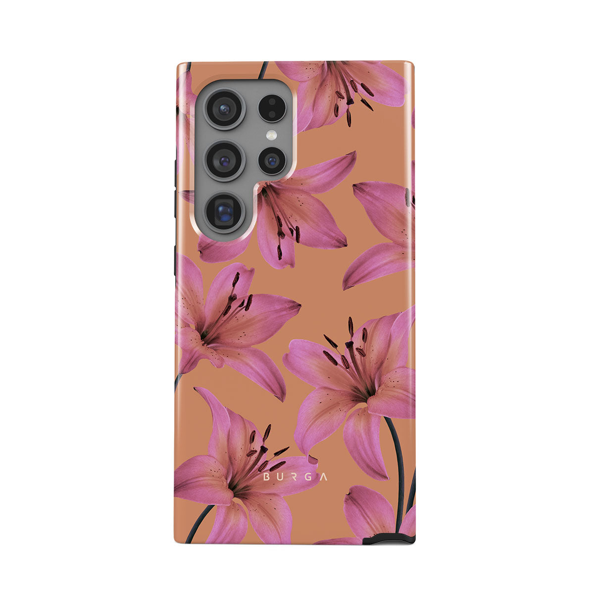 A design inspired by the effortless bloom of lilies, reflecting the beauty of embracing life's spontaneous moments. Like lilies that thrive untamed, this case reminds us to flourish in the face of change. Embodying the magic of life's unpredictable tapestry with our Eden Samsung Galaxy S24 Ultra phone case.
