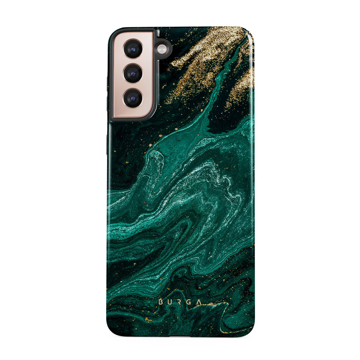 There is a place where the pools are glowing like emeralds, straight from the fairy-tale or forest of magic. With the Emerald Pool Samsung Galaxy S21 Plus phone case combining trendy marble patterns with dazzling green, you can have the elegant piece of a magical world in your hand.