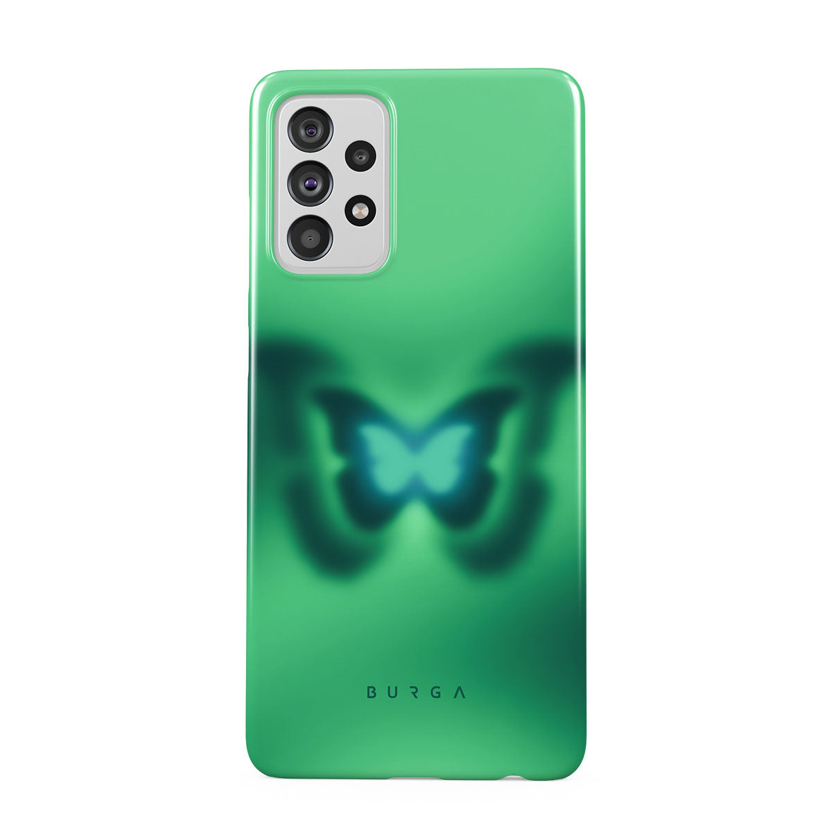 Immerse yourself in the captivating essence of Energy. This radiant Samsung Galaxy A72 4G / 5G phone case design, featuring a butterfly against a striking green background, symbolizes transformation and the excitement of new adventures. Its dynamic allure complements every OOTD.