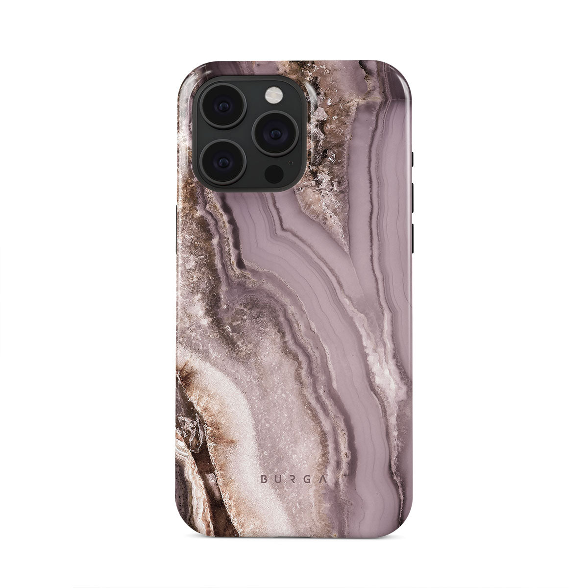 Make a fashion statement with iPhone 15 Pro Max phone case that reminds of a geode in the softest mauve shade. A phone case that is both pretty and protective is a best friend of a fashion lover.