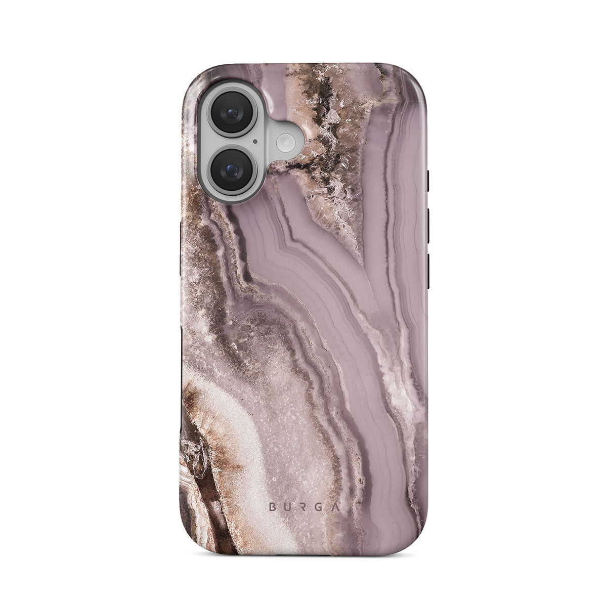 Make a fashion statement with iPhone 16 phone case that reminds of a geode in the softest mauve shade. A phone case that is both pretty and protective is a best friend of a fashion lover.