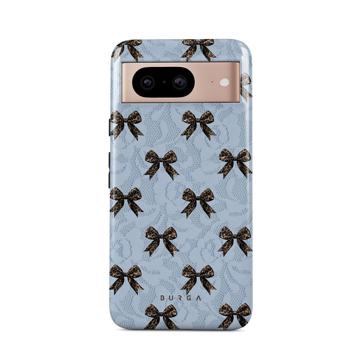 For those who command attention with subtle elegance, our Fashionista Google Pixel 8 phone case design is your go-to. A soft blue background, accented by dark grey bows and subtle lace patterns, exudes polished, effortless style. It's quiet confidence with a hint of charm.