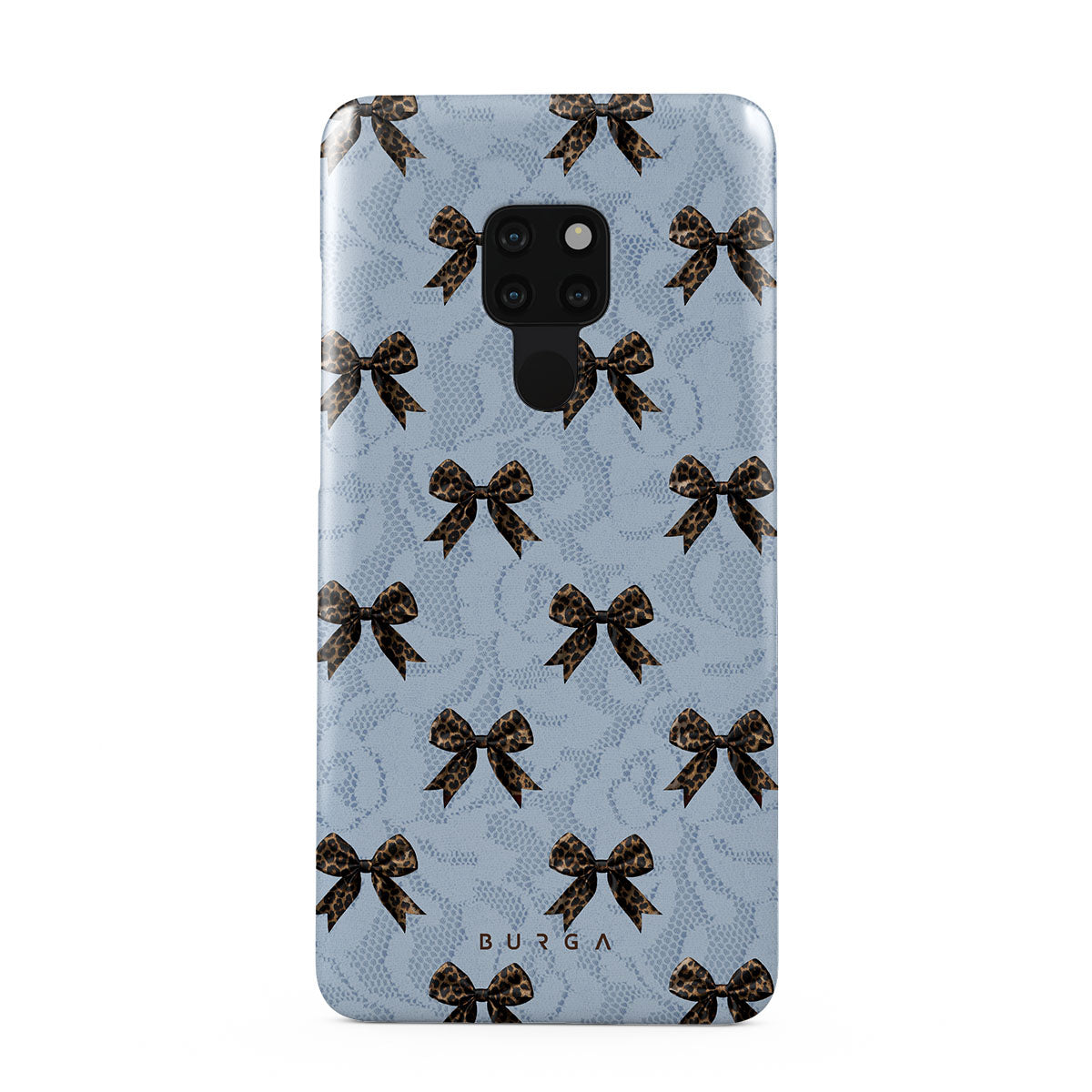 For those who command attention with subtle elegance, our Fashionista Huawei Mate 20 phone case design is your go-to. A soft blue background, accented by dark grey bows and subtle lace patterns, exudes polished, effortless style. It's quiet confidence with a hint of charm.