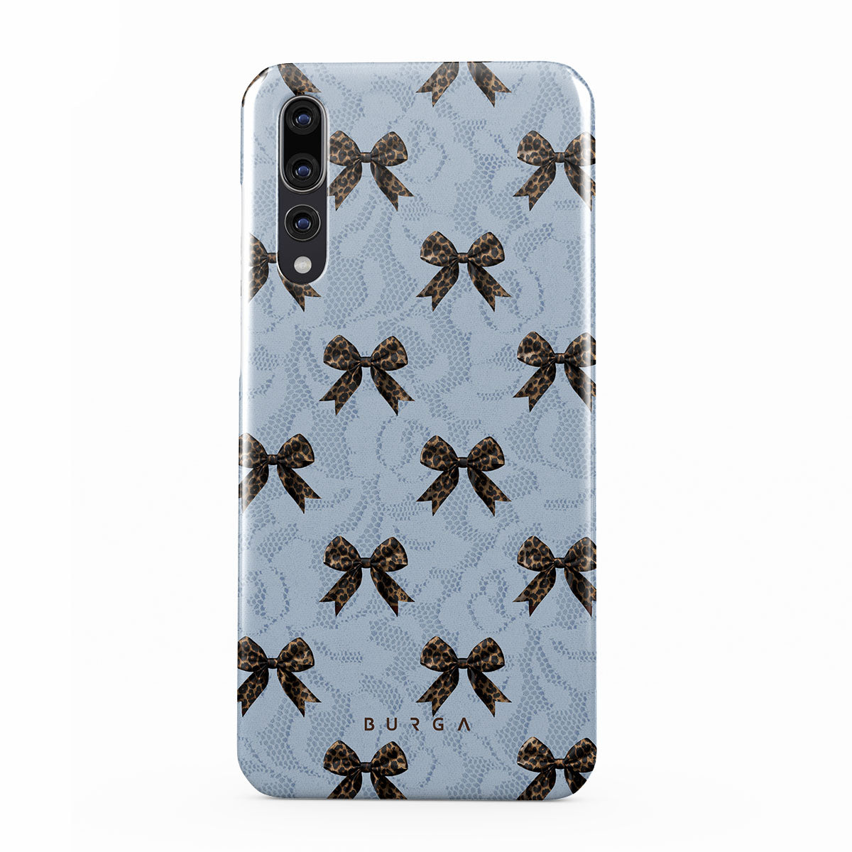 For those who command attention with subtle elegance, our Fashionista Huawei P20 phone case design is your go-to. A soft blue background, accented by dark grey bows and subtle lace patterns, exudes polished, effortless style. It's quiet confidence with a hint of charm.