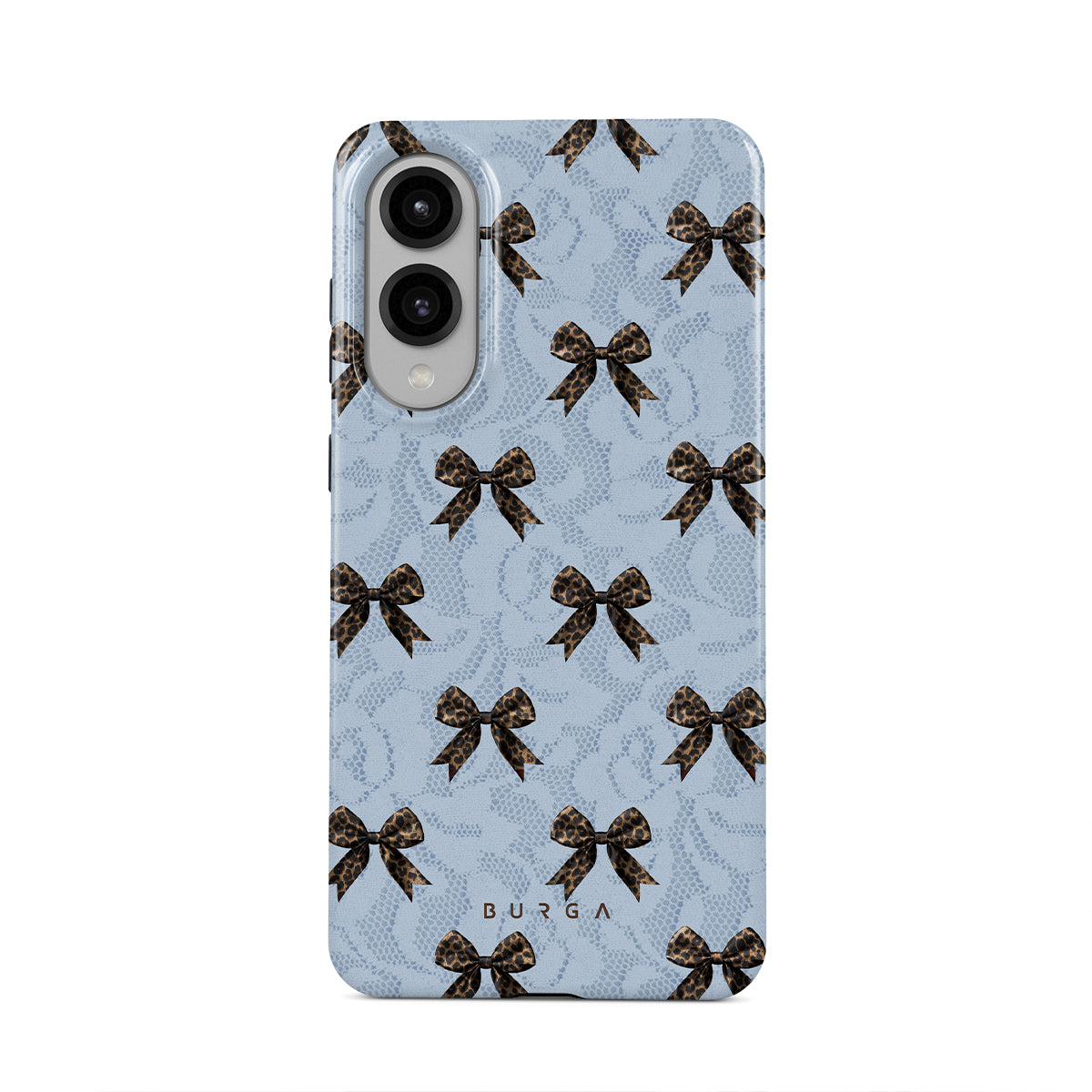 For those who command attention with subtle elegance, our Fashionista Samsung Galaxy S25 Edge phone case design is your go-to. A soft blue background, accented by dark grey bows and subtle lace patterns, exudes polished, effortless style. It's quiet confidence with a hint of charm.