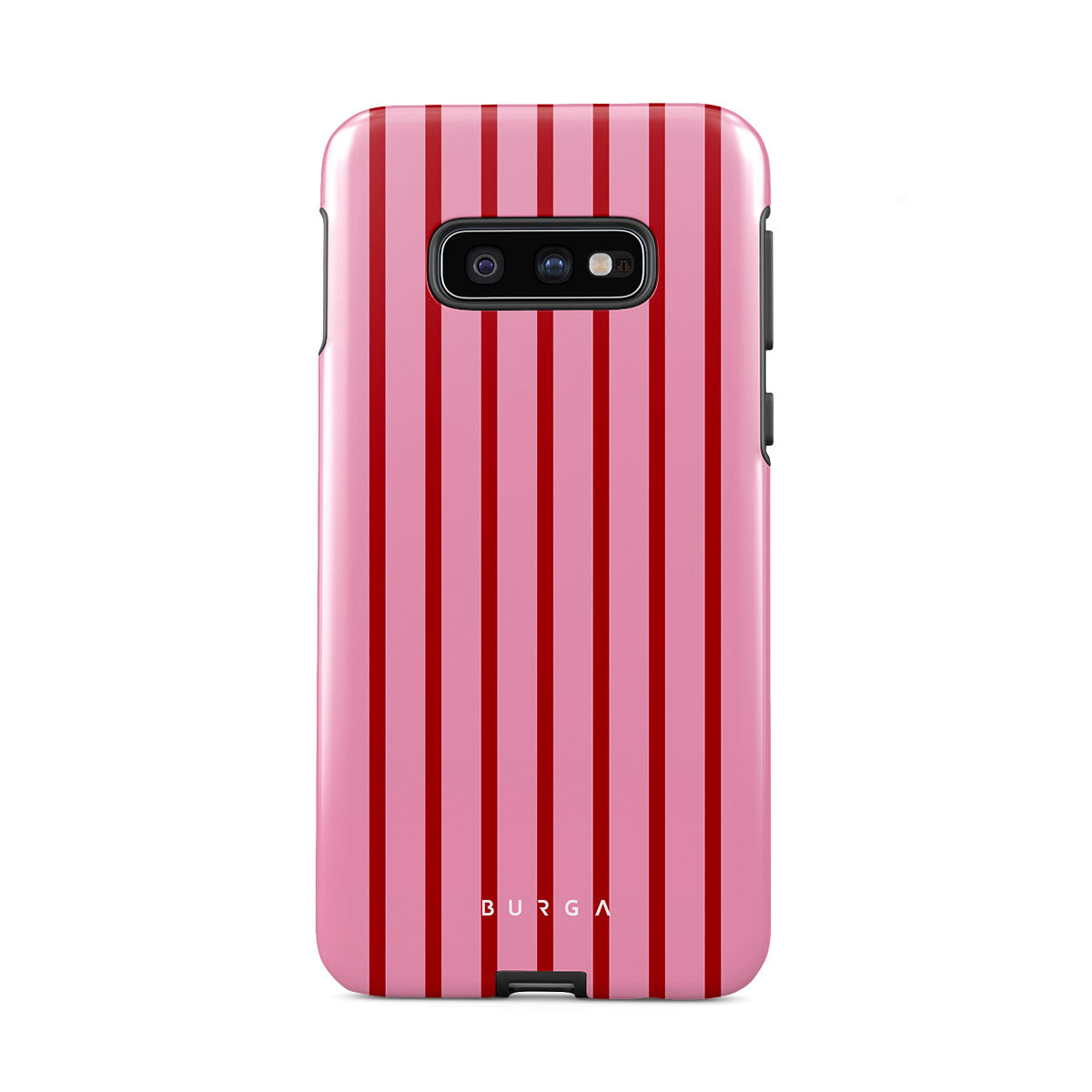 Step right up to the sweet charm of our Favorite Bikini Samsung Galaxy S10E phone case design. This vibrant array of pink and magenta stripes evokes memories of summer funfairs and whimsical candy canes.