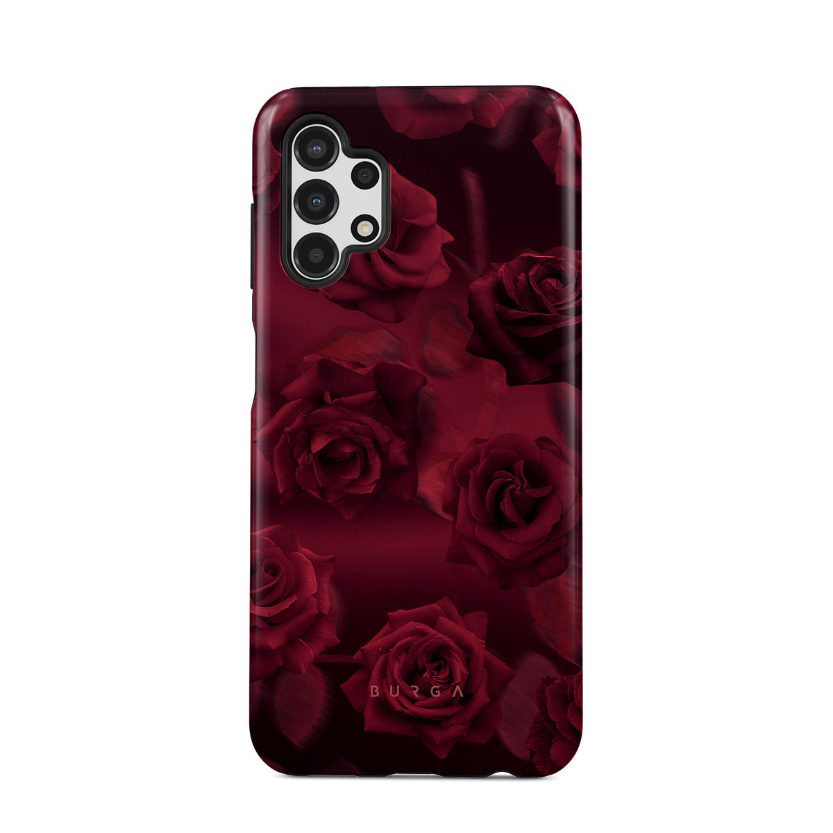 Dive into our intriguing Femme Fatale Samsung Galaxy A13 4G phone case design. These deep red roses aren't just flowers—they're silent confessions of candlelit romance and moments caught in stolen glances. Crafted for those who captivate at every turn.