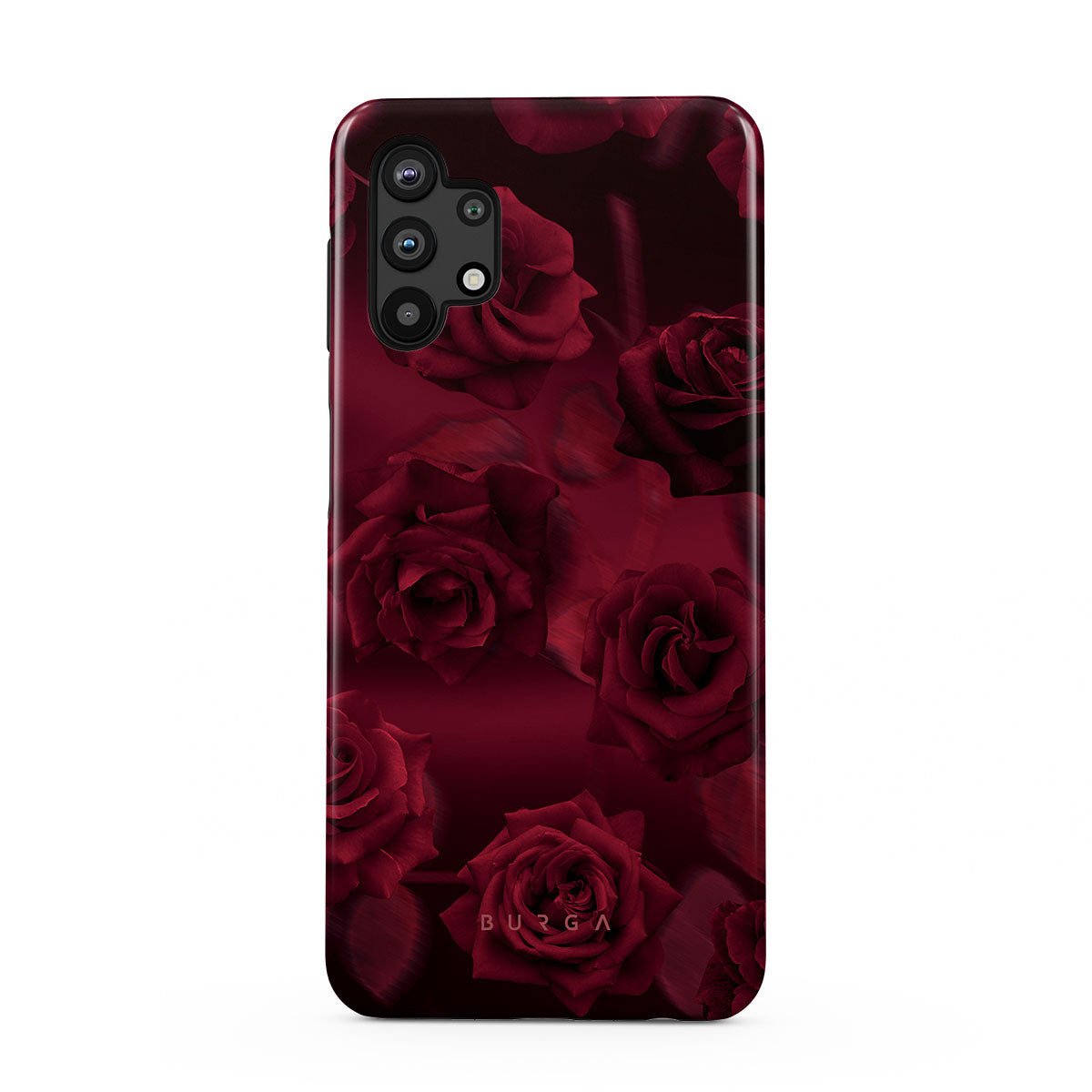 Dive into our intriguing Femme Fatale Samsung Galaxy A32 5G phone case design. These deep red roses aren't just flowers—they're silent confessions of candlelit romance and moments caught in stolen glances. Crafted for those who captivate at every turn.