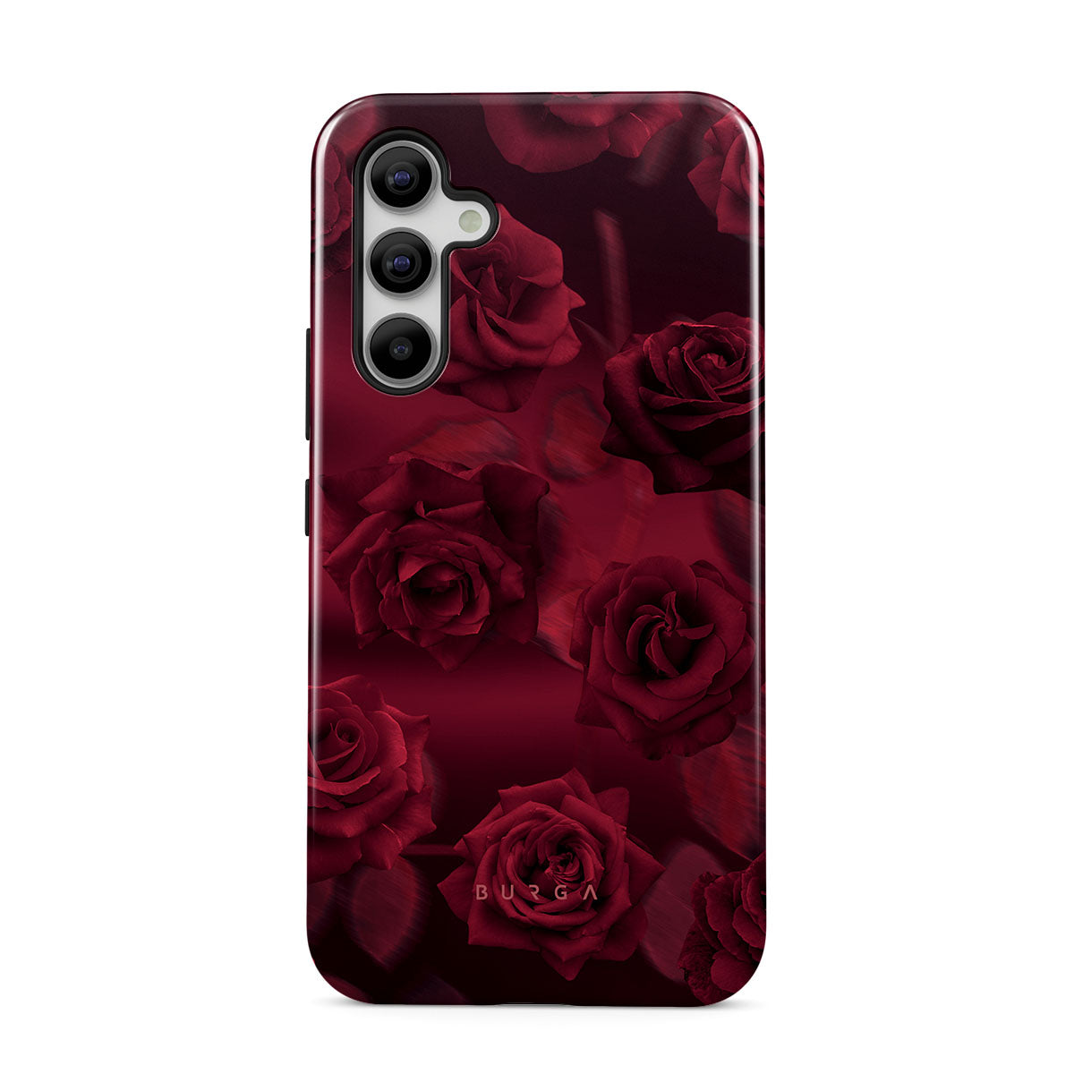 Dive into our intriguing Femme Fatale Samsung Galaxy A54 phone case design. These deep red roses aren't just flowers—they're silent confessions of candlelit romance and moments caught in stolen glances. Crafted for those who captivate at every turn.