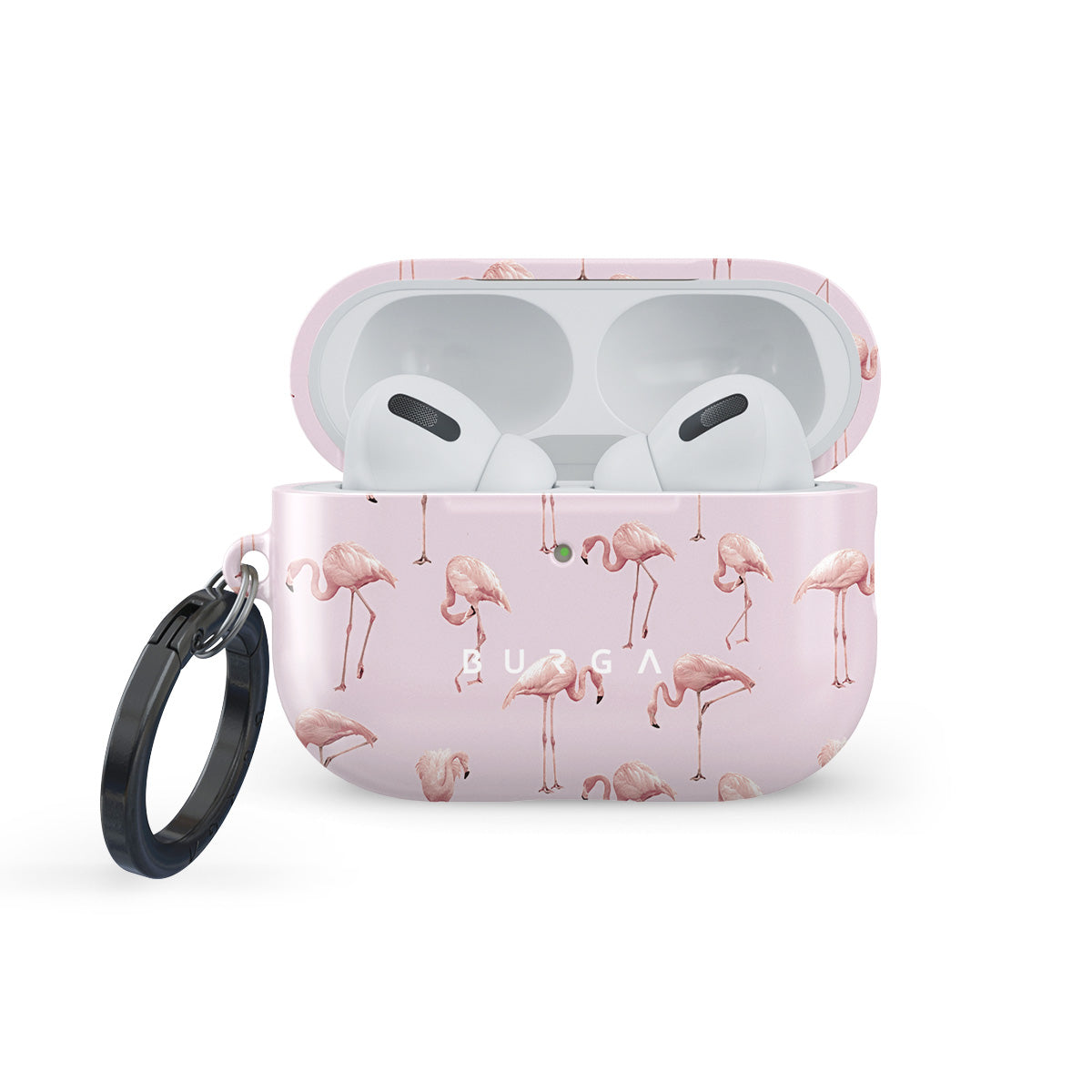 Nostalgic Pink Apple AirPods Pro 3 case cover combines baby pink and playful flamingos pattern into a unique creation. The designer case will add a touch of playfulness to your style and will quickly turn a plain case into an accessory you must have. Our case fits perfectly snug around Apple AirPods Pro 3 . “Like a glove!” one might say. And it won’t disrupt the wireless charging capabilities of the newer model. There’s even an LED light indicator to prove it (don’t worry, wired charging still works, too). When fitted, the BURGA case will protect the delicate Apple AirPods Pro 3 case beneath it from scratches, bumps, and drops while remaining scratch-free itself. Our signature design pattern prints are High Quality, and will never peel or fade away- thanks to our unique printing technology. And finally, a handy carabiner is there to make your life easier and more convenient: just snap it around your keys or belt loop and tackle the day head-on. Your music is right there by your side when you need it.