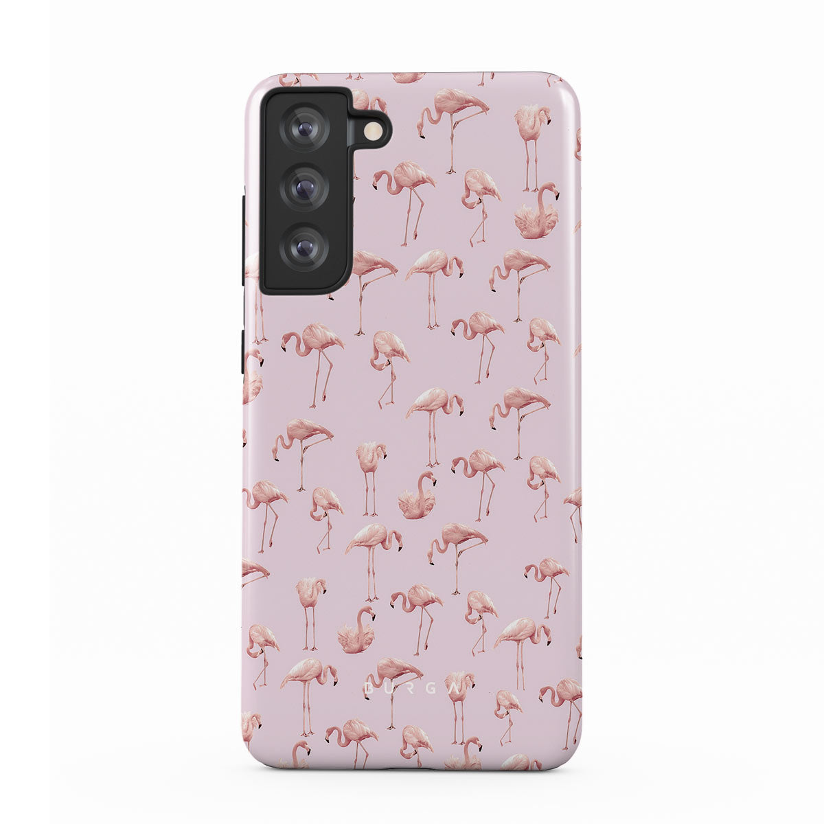 With our Nostalgic Pink Samsung Galaxy S21 FE phone case cover, you can have a chic pink flamingos pattern combined with a pretty pink background. Add a modern art feel to your phone. No one said that a protective phone case needs to be boring.
