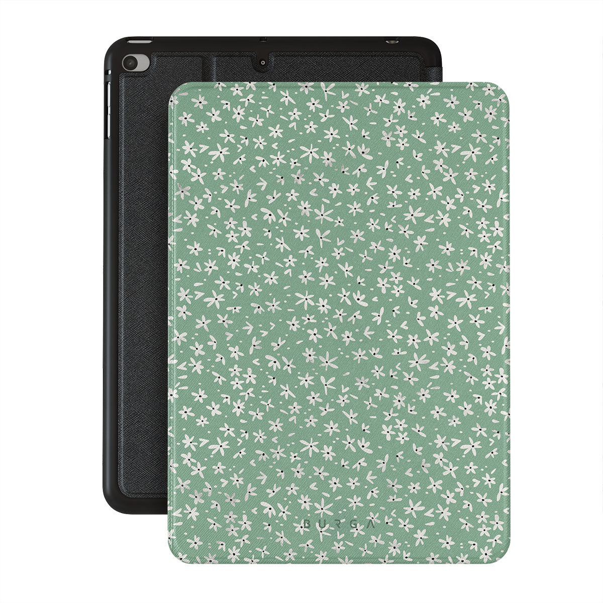 Our minimalistic floral Lush Meadows iPad Mini 7.9 (5th Gen) folio case is inspired by the green fields covered in petite and dainty flowers. The soft green iPad case cover with a delicate floral pattern creates a perfect feminine design that will fit every occasion.
