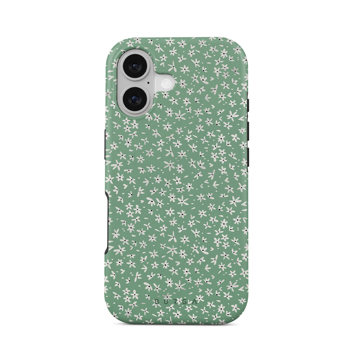 Our minimalistic floral Lush Meadows iPhone 17 phone case is inspired by the green fields covered in petite and dainty flowers. The soft green phone case with a delicate floral pattern creates a perfect feminine design that will fit every occasion.