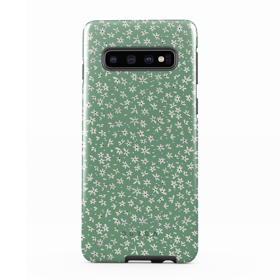 Our minimalistic floral Lush Meadows Samsung Galaxy S10 phone case is inspired by the green fields covered in petite and dainty flowers. The soft green phone case with a delicate floral pattern creates a perfect feminine design that will fit every occasion.
