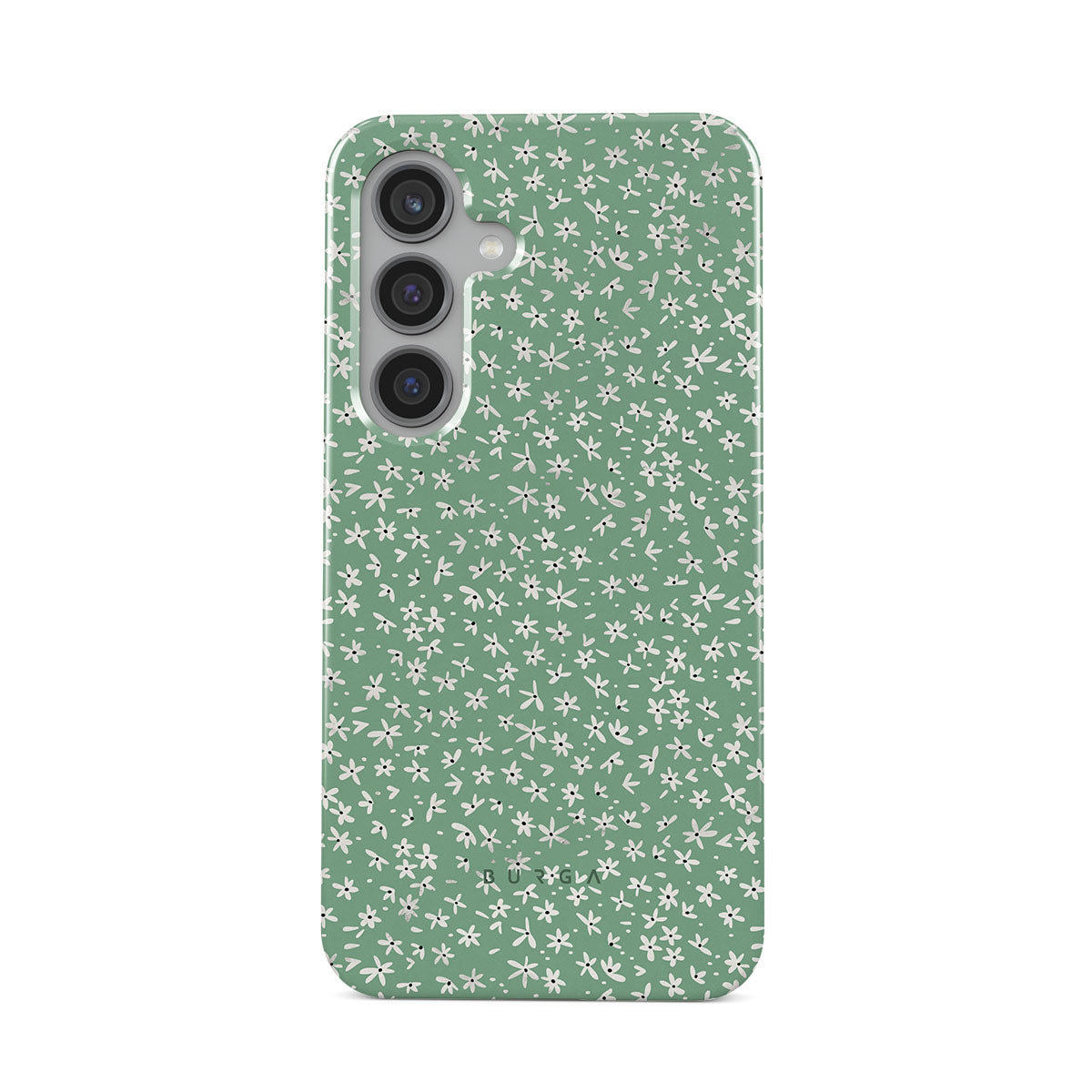 Our minimalistic floral Lush Meadows Samsung Galaxy S24 FE phone case is inspired by the green fields covered in petite and dainty flowers. The soft green phone case with a delicate floral pattern creates a perfect feminine design that will fit every occasion.