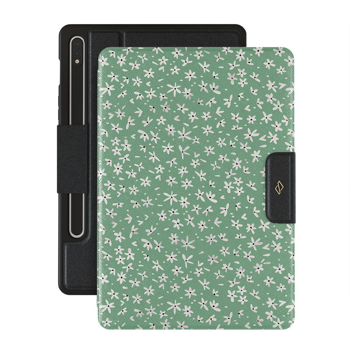 Our minimalistic floral Lush Meadows Samsung Galaxy Tab S10+ folio case is inspired by the green fields covered in petite and dainty flowers. The soft green Galaxy Tab case cover with a delicate floral pattern creates a perfect feminine design that will fit every occasion.