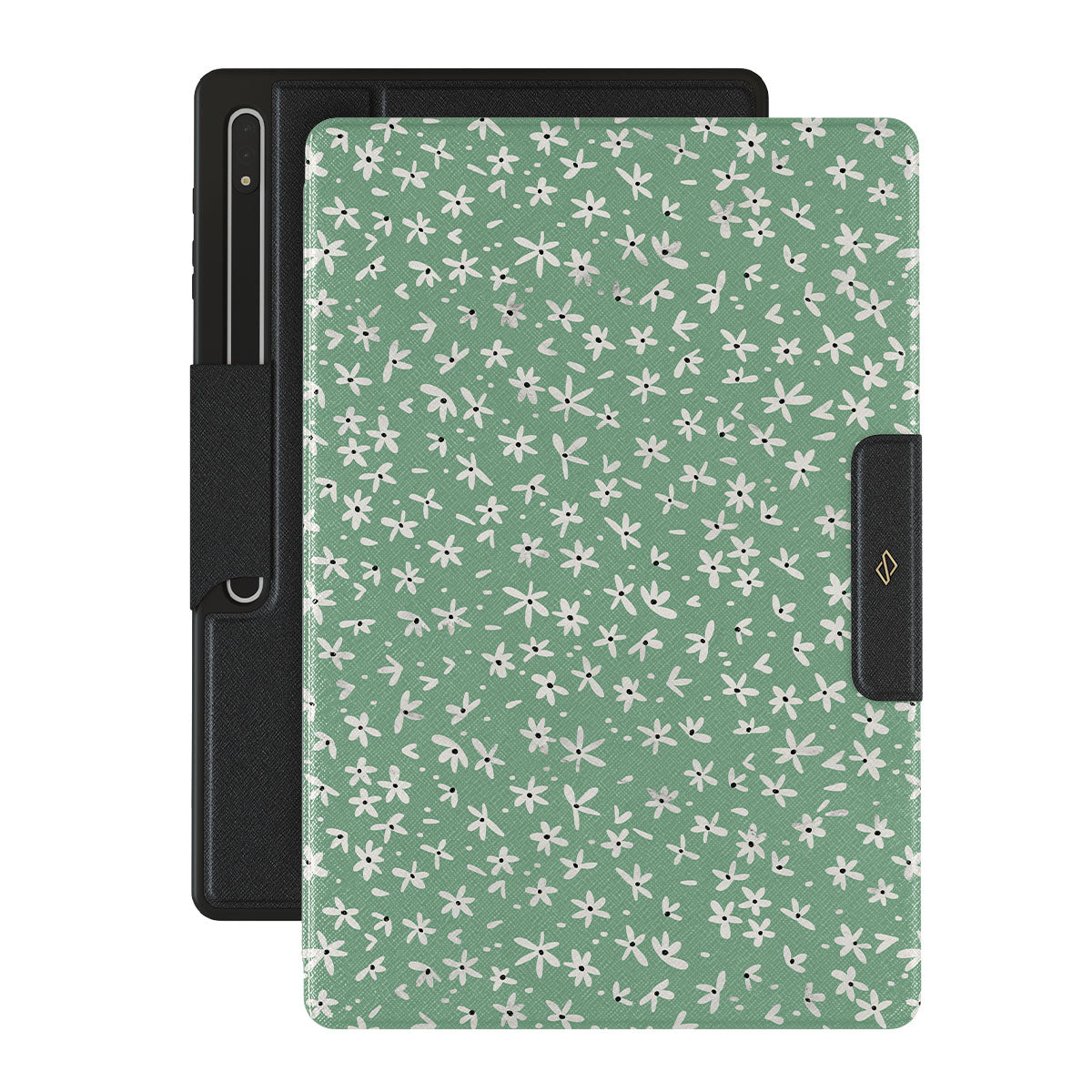 Our minimalistic floral Lush Meadows Samsung Galaxy Tab S8 Ultra folio case is inspired by the green fields covered in petite and dainty flowers. The soft green Galaxy Tab case cover with a delicate floral pattern creates a perfect feminine design that will fit every occasion.