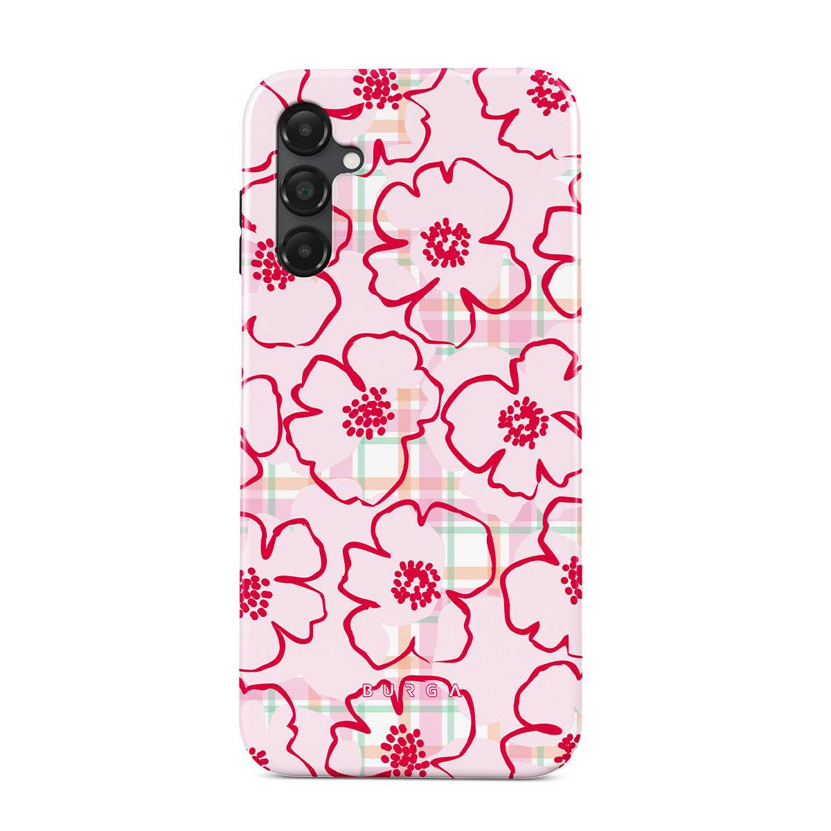Pink flowers bloom from this Samsung Galaxy A25 phone case design—just like the ones you’d pick and put in your hair, simple and pretty, turning every walk through the garden into a fairy tale.