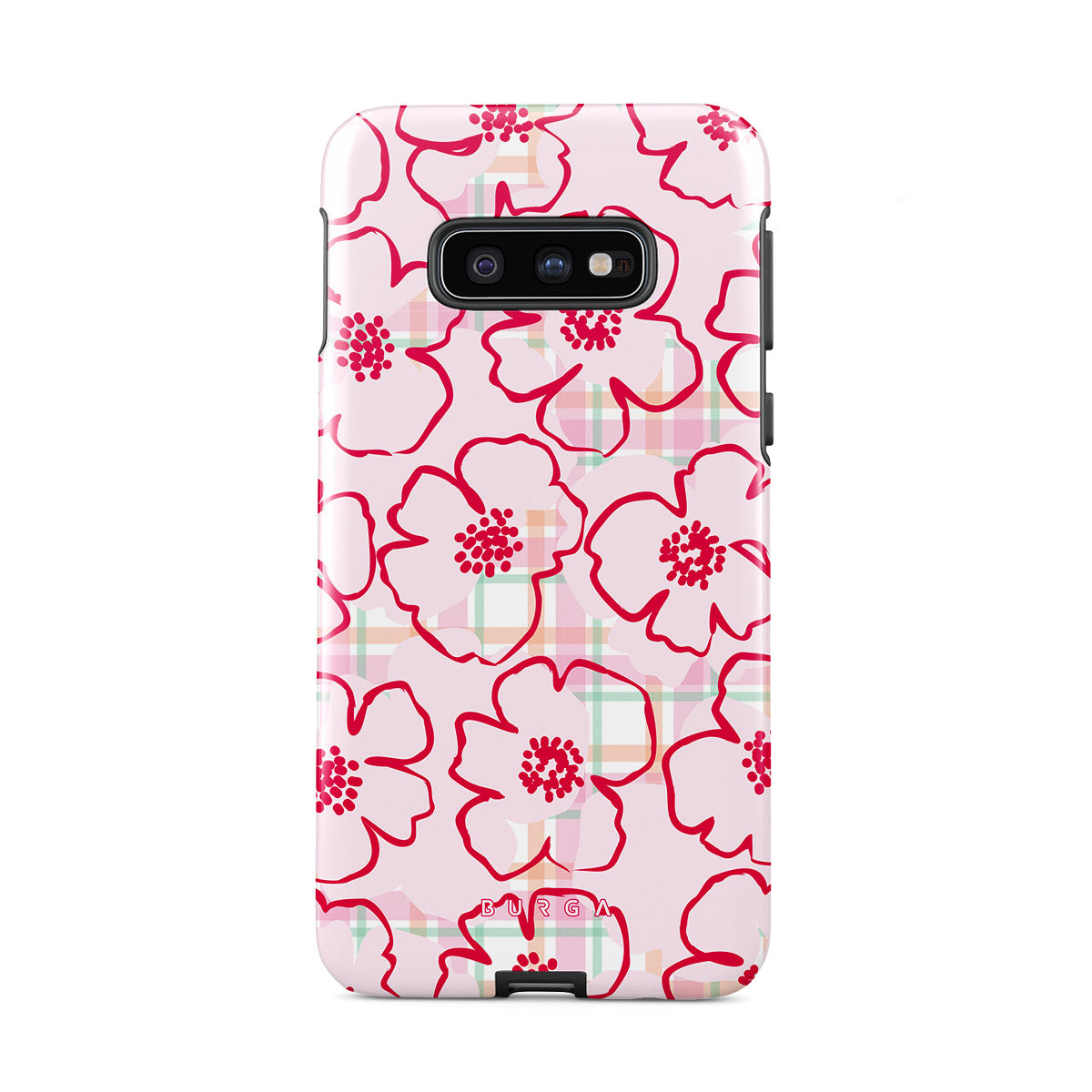 Pink flowers bloom from this Samsung Galaxy S10E phone case design—just like the ones you’d pick and put in your hair, simple and pretty, turning every walk through the garden into a fairy tale.