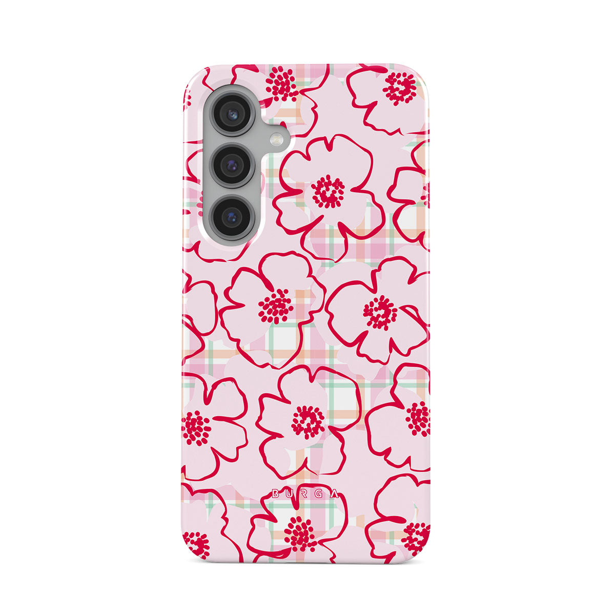 Pink flowers bloom from this Samsung Galaxy S24 Plus phone case design—just like the ones you’d pick and put in your hair, simple and pretty, turning every walk through the garden into a fairy tale.