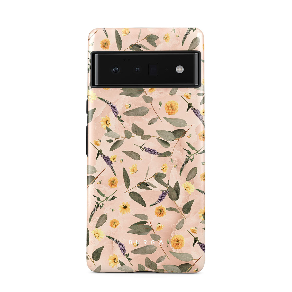 Sunday Brunch Google Pixel 6 Pro phone case features a timeless flower pattern. The soft-toned case with a pop of lavender and yellow colors will add a splash of energy to your style while protecting your phone from dangerous falls.