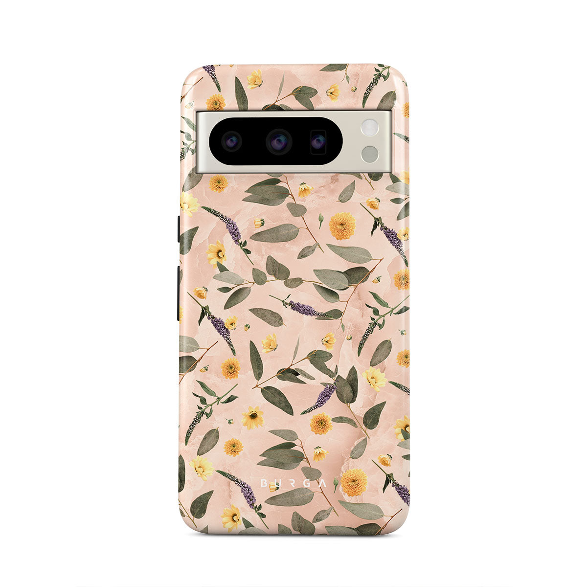 Sunday Brunch Google Pixel 8 Pro phone case features a timeless flower pattern. The soft-toned case with a pop of lavender and yellow colors will add a splash of energy to your style while protecting your phone from dangerous falls.