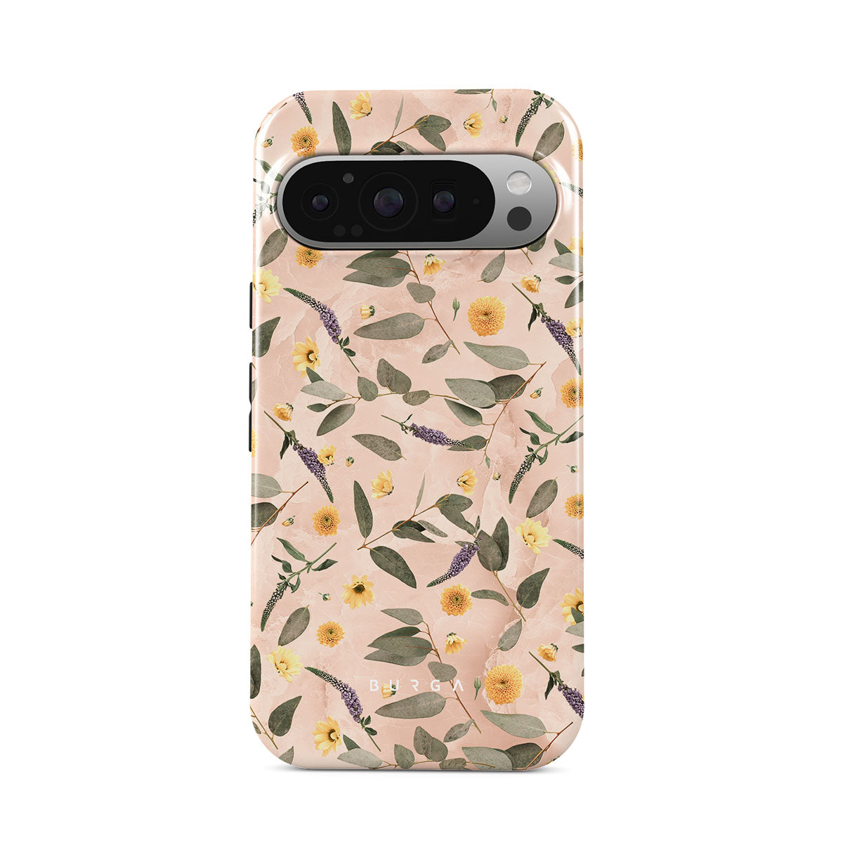 Sunday Brunch Google Pixel 9 Pro XL phone case features a timeless flower pattern. The soft-toned case with a pop of lavender and yellow colors will add a splash of energy to your style while protecting your phone from dangerous falls.