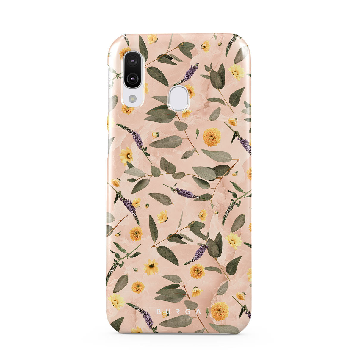 Sunday Brunch Samsung Galaxy A40 phone case features a timeless flower pattern. The soft-toned case with a pop of lavender and yellow colors will add a splash of energy to your style while protecting your phone from dangerous falls.