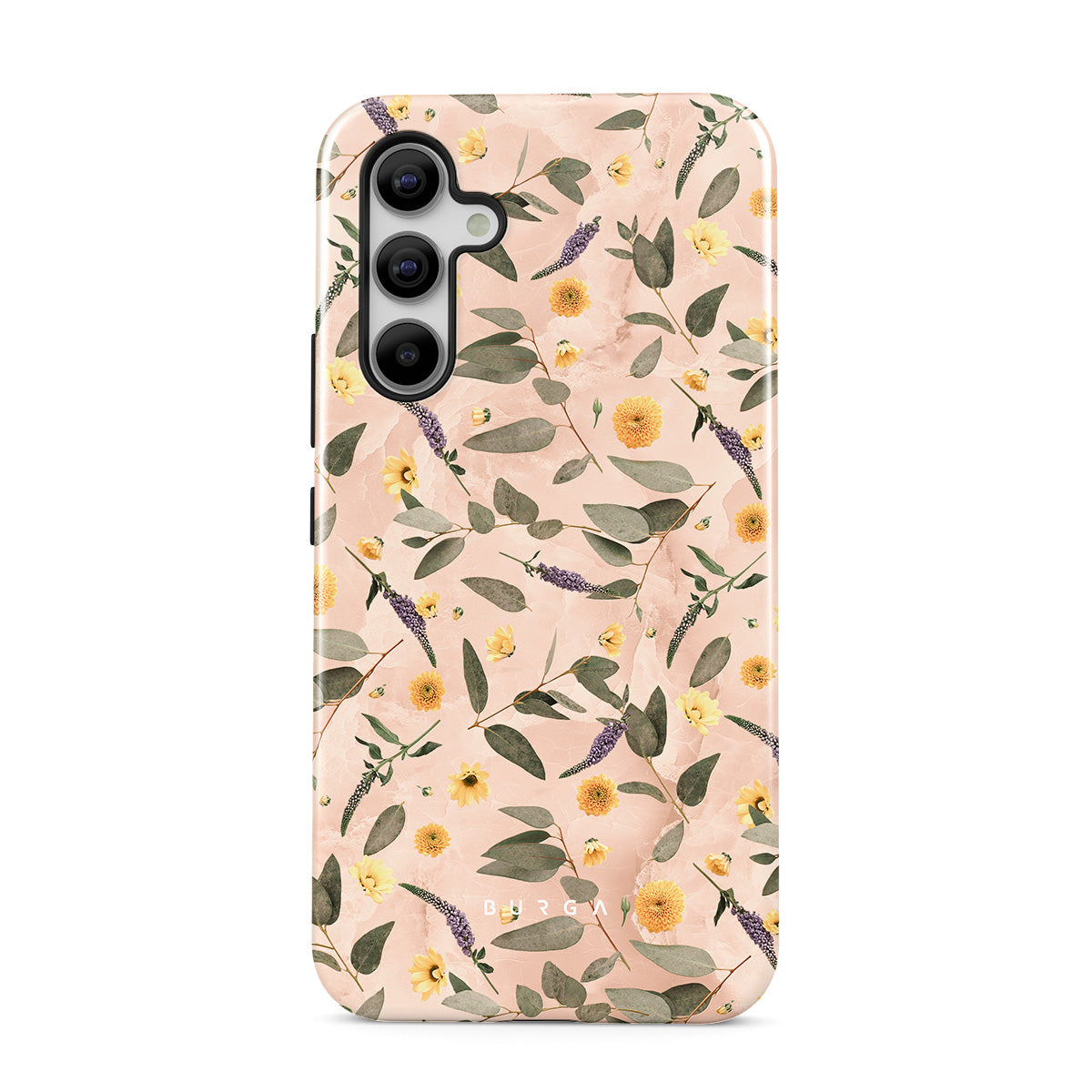 Sunday Brunch Samsung Galaxy A51 phone case features a timeless flower pattern. The soft-toned case with a pop of lavender and yellow colors will add a splash of energy to your style while protecting your phone from dangerous falls.