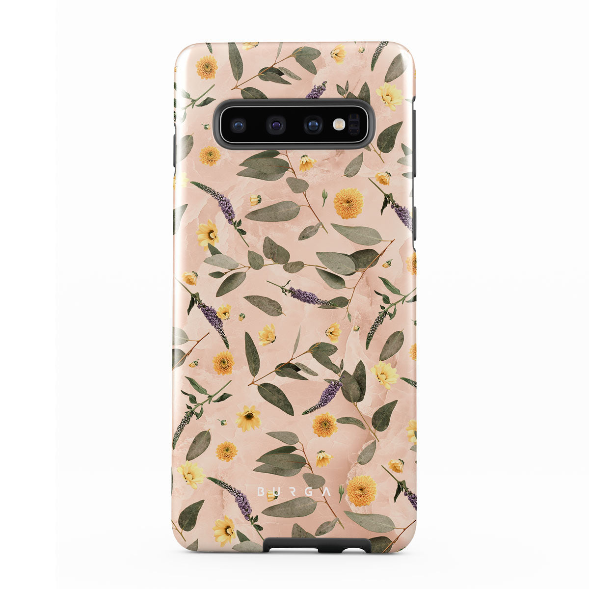 Sunday Brunch Samsung Galaxy S10 phone case features a timeless flower pattern. The soft-toned case with a pop of lavender and yellow colors will add a splash of energy to your style while protecting your phone from dangerous falls.