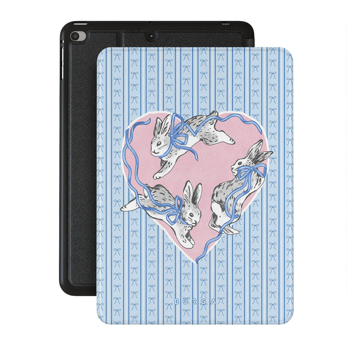They run, you chase. Or maybe you run, and they chase you. The Follow Me folio case design is an eternal loop—white rabbits tangled in pink ribbons, leading you somewhere unknown. Or maybe, somewhere you’ve already been.