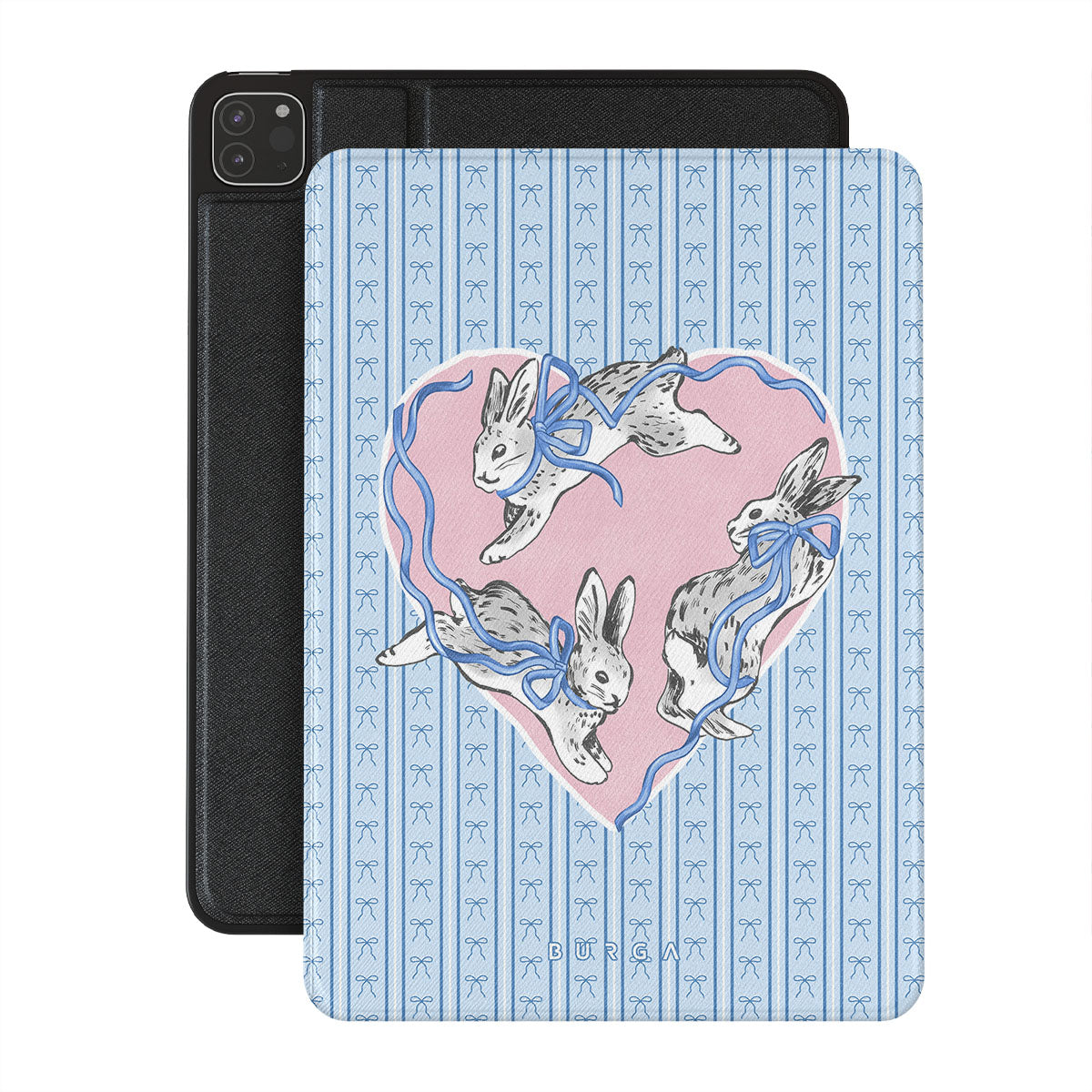 They run, you chase. Or maybe you run, and they chase you. The Follow Me folio case design is an eternal loop—white rabbits tangled in pink ribbons, leading you somewhere unknown. Or maybe, somewhere you’ve already been.