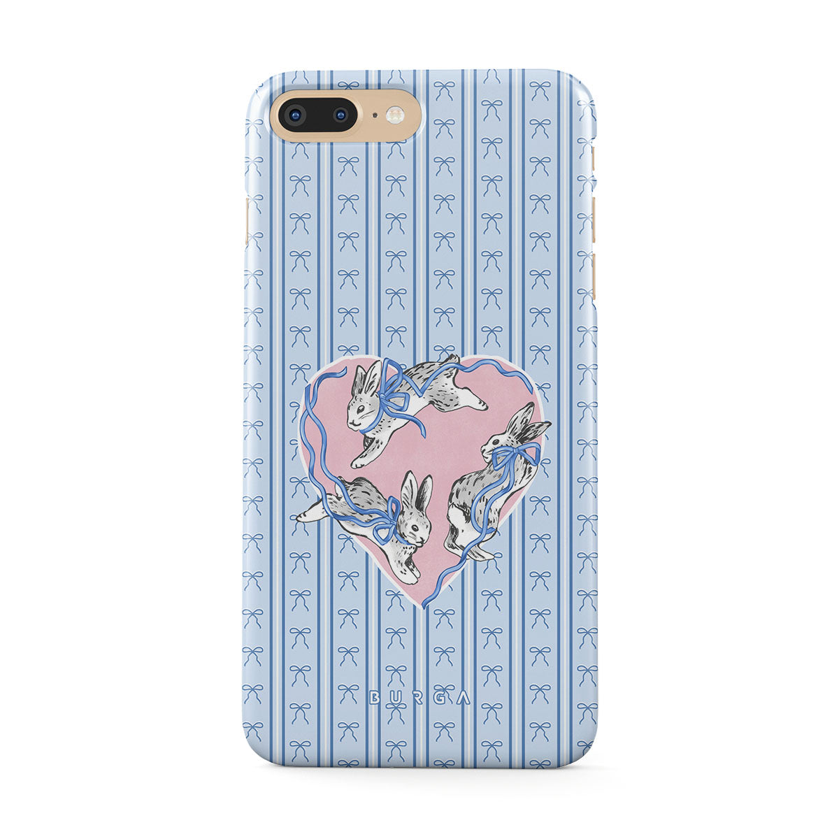 They run, you chase. Or maybe you run, and they chase you. The Follow Me iPhone 7 Plus / 8 Plus phone case design is an eternal loop—white rabbits tangled in pink ribbons, leading you somewhere unknown. Or maybe, somewhere you’ve already been.