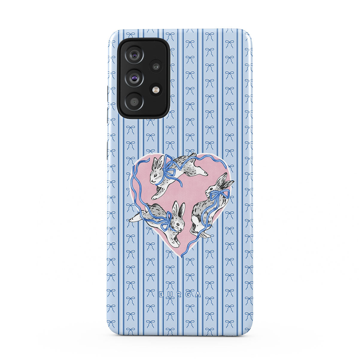They run, you chase. Or maybe you run, and they chase you. The Follow Me Samsung Galaxy A52 / A52S 4G / 5G phone case design is an eternal loop—white rabbits tangled in pink ribbons, leading you somewhere unknown. Or maybe, somewhere you’ve already been.