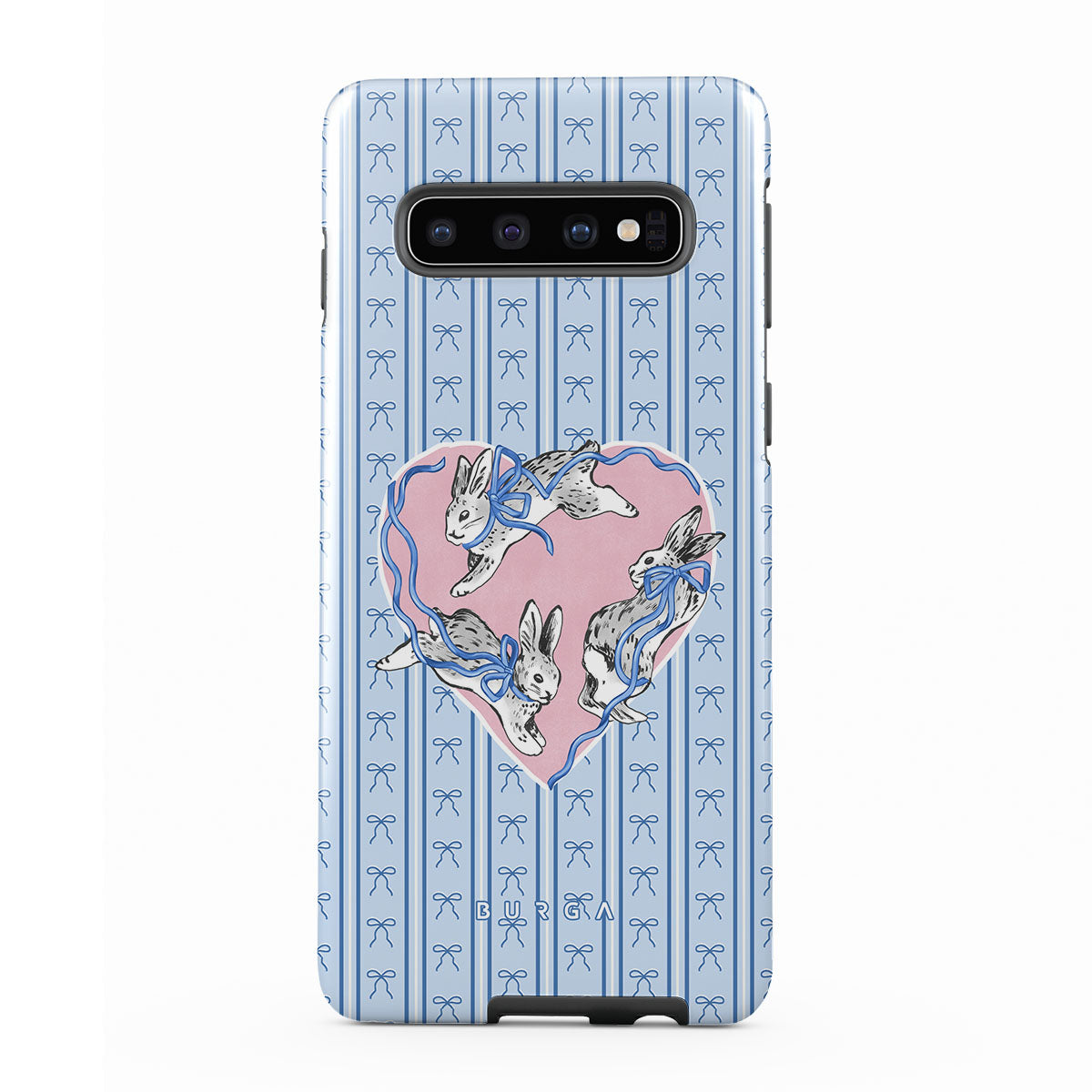 They run, you chase. Or maybe you run, and they chase you. The Follow Me Samsung Galaxy S10 4G phone case design is an eternal loop—white rabbits tangled in pink ribbons, leading you somewhere unknown. Or maybe, somewhere you’ve already been.