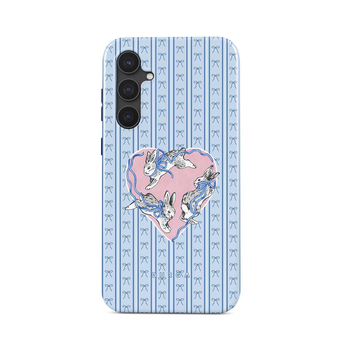 They run, you chase. Or maybe you run, and they chase you. The Follow Me Samsung Galaxy S23 FE phone case design is an eternal loop—white rabbits tangled in pink ribbons, leading you somewhere unknown. Or maybe, somewhere you’ve already been.