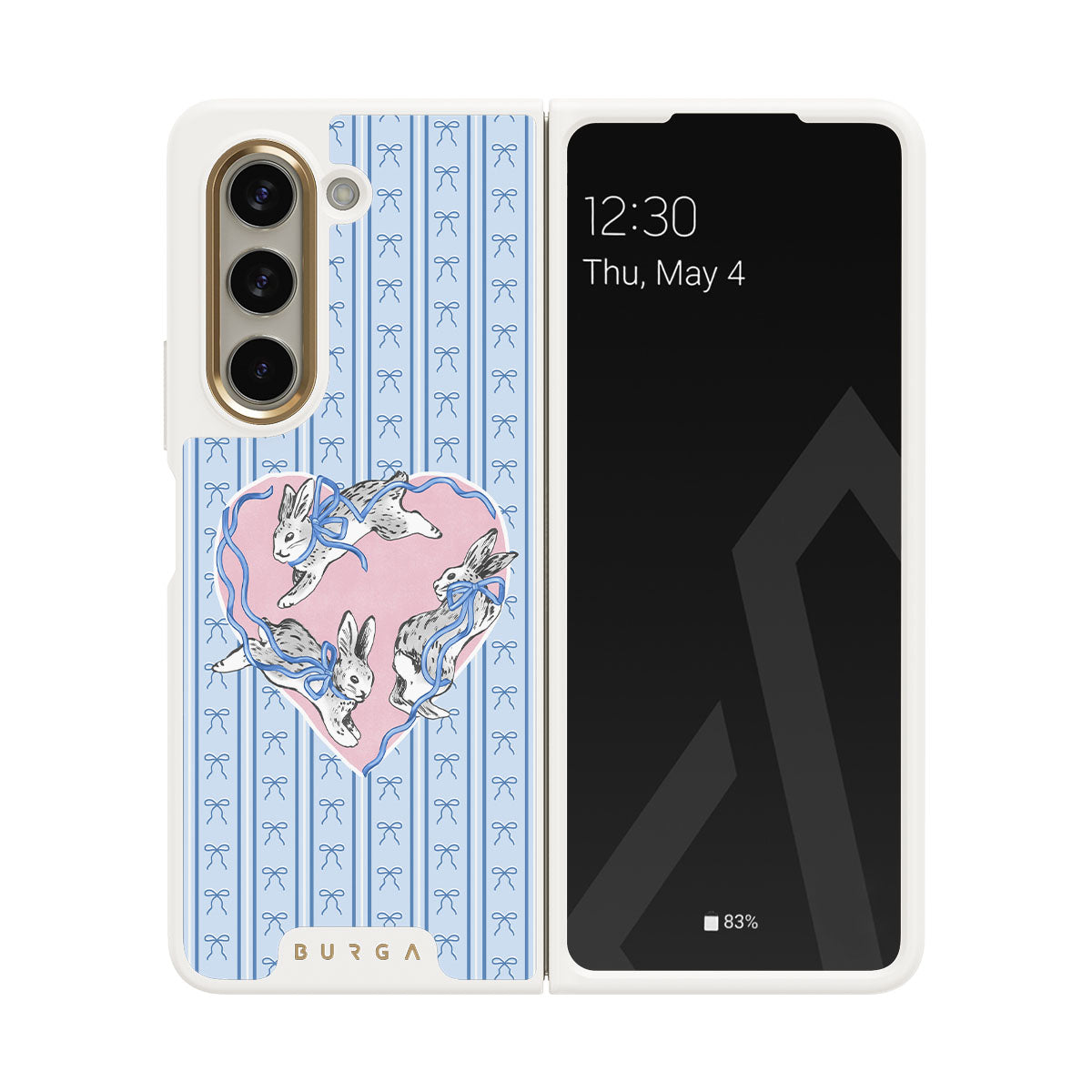 They run, you chase. Or maybe you run, and they chase you. The Follow Me Samsung Galaxy Z Fold 5 phone case design is an eternal loop—white rabbits tangled in pink ribbons, leading you somewhere unknown. Or maybe, somewhere you’ve already been.
